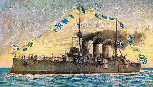 En ce jour du 18 janvier 1913, la marine de guerre grecque mit en déroute la marine turque assurant définitivement à la Grèce la maitrise totale de la Mer Egée, désormais Mer Grecque. Les bateaux turcs se replièrent dans le Détroit des Dardanelles et n’en sortirent plus.